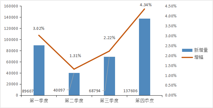 截止到2020年12月31日,爱加密移动应用安全大数据平台收录全国Android应用共计3307221款,应用安装包(apk)10437961个,iOS 应用共计2101025款,微信公众号5197144个,微信小程序643372个。2020年度,全国总计新增应用336104款,年增幅为11.31%。四个季度的增幅分别如下: