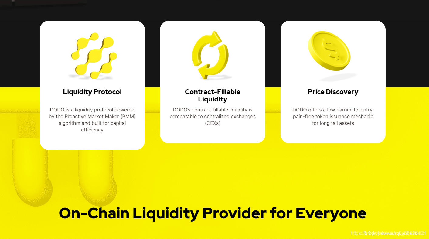 DODO是基于主动做市商算法的下一代链上流动性基础设施。DODO作为一个去中心化交易平台,采用资金池模式,纯链上交易。支持新资产的无成本发行。