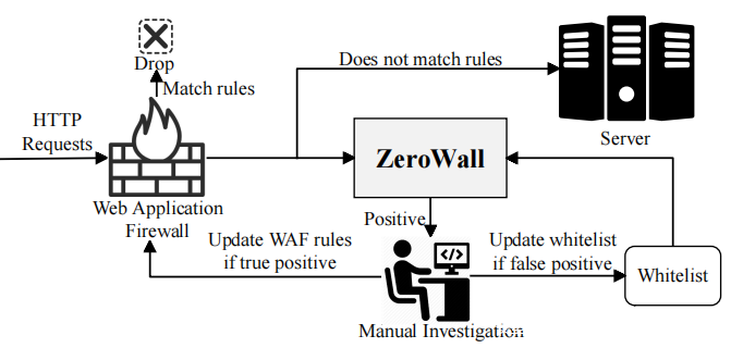 4)人工调查:将人工确认的错误警报和真正的0-day攻击分别纳入白名单和WAF。