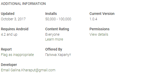 这些恶意应用中还包含一些非常流行的应用,根据Google Play的统计结果,其中有7款应用的安装量为10,000-100,000次,9款应用的安装量为1,000-10,000次。剩下的所有应用安装量均小于1,000次。