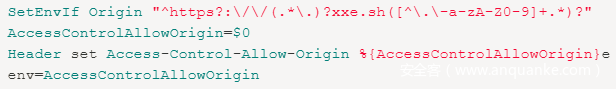 由于.*.并不是整体,?只对.之后的符号有影响,因此xxe.sh之前可以有任意字符。这也意味着攻击者可以发送任意以xxe.sh结尾的请求,实现跨域。