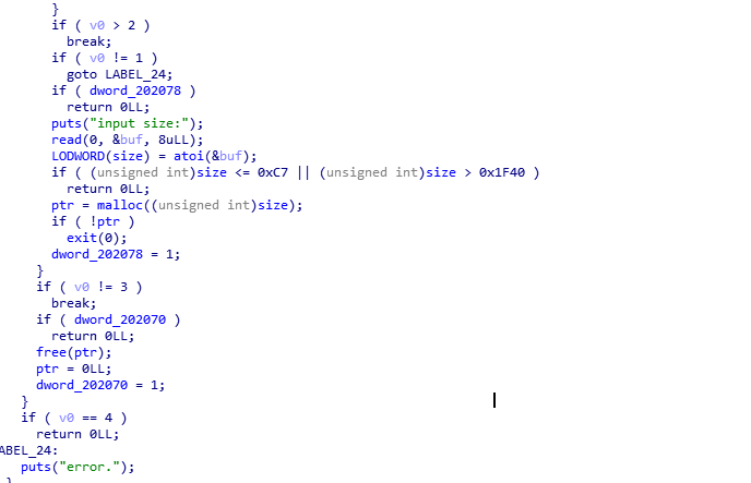 第四个函数主要是对堆块的操作,我们可以利用利用这个函数伪造一个_IO_FILE结构