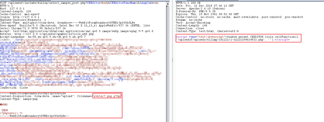 随后 include/dialog/select_images_post.php 进行图片的校验,在这里可以明显的看到逻辑错误,这里针对文件名中的异常符号进行了替换为”的操作,并且随后的正则过滤条件限定宽松。导致漏洞产生。