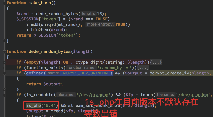 如果要开启会员功能,需要访问到sys_info.php, 但这个文件最终会调用到dede_random_bytes, 其中有个一个关于MCRYPT_DEV_URANDOM的检测。