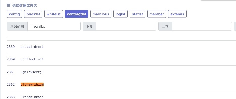 4、接入慢雾安全团队孵化的DApp防火墙—FireWallX(体验地址:https://firewallx.io/console/index.html), 本次LuckyMe攻击者帐号(ultnavrzhium)在LuckyMe被攻击前已在防火墙合约监控名单中。