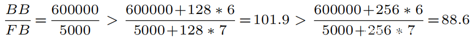 为简单起见,假设F B = 5,000,BB = 600,000,当对n(并发流数)使用128或256时,不等式变为: