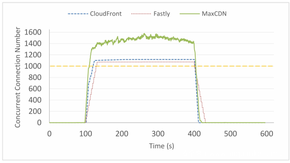 实验设置:在的实验中建立了一个自建的Apache网络服务器,并将其部署为六个CDN背后的源网站。 Apache Web服务器的并发连接限制配置为默认值1000 。