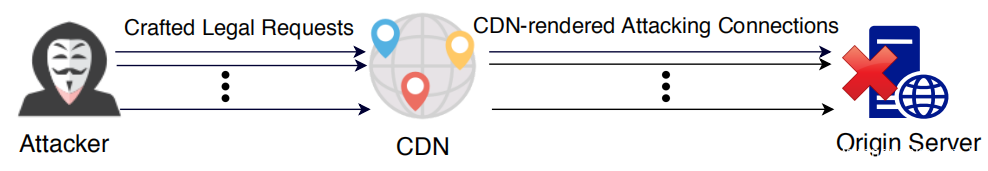 但是,在本文中,通过实证研究六个CDN的转发行为,发现CDN本身可被滥用来攻击CDN背后的来源(网站服务器)。通过向CDN发送精心制作但合法的请求,攻击者可以对源发起DoS攻击,从而破坏CDN DoS保护。简而言之,揭示了以下三个威胁: