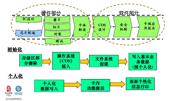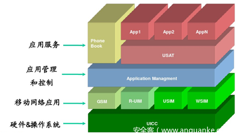 现代SIM卡是一个软件和硬件的组合产品,如下图[1]所示,具有系统、文件、指令、业务四层结构。其中需要过多谈及软件部分,COS也就是SIM卡的操作系统。