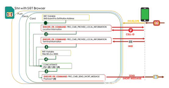而Simjacker漏洞触发的原因主要由于,部分运营商发行的SIM卡中S@T 浏览器对收到的消息有效性所对应的安全配置存在校验错误,由于S@T浏览器通常使用短信与S@T网关进行交互,因此如果Sim卡的网关侧不过滤构造的漏洞利用数据包,并可成功将载荷发送到目标的S@T浏览器,即可满足第一个攻击条件。而第二条件则需要确定目标的SIM卡确实安装了S@T浏览器。