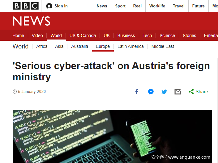 BBC《奥地利外交部正面临“严重的网络攻击”》