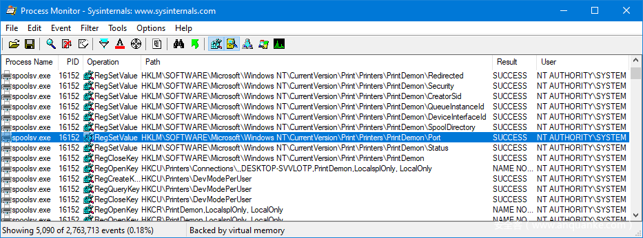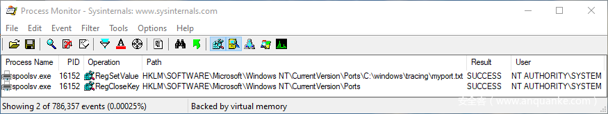 总结一下,现在我们了解了一些简单的非特权PowerShell命令以及作用相同的C代码,我们可以假装创建一个打印机,向文件系统中写入数据。下面我们可以使用Process Monitor了解幕后的具体操作。