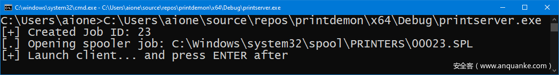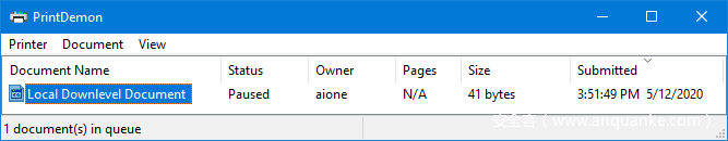 与预期相符,我们可以创建spool文件,并且可以在打印队列中看到我们的作业,这显然留下不少线索,可以帮防御方定位。