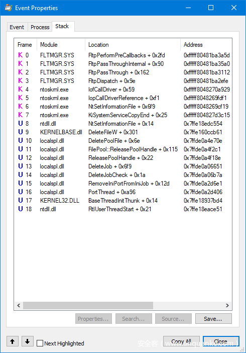 最后,当完成写操作后,(默认情况下)spool文件和影子作业文件都会被删除,如下SetDisposition调用所示: