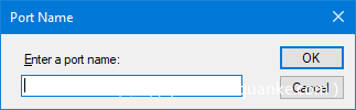 如果想用C来完成,我们可以有两种选择。我们可以使用AddPortW API,弹出窗口要求用户输入端口名。我们并不需要设计GUI,可以传入NULL作为hWnd参数的值,当用户创建端口后,程序才会解除阻塞状态。UI如下所示: