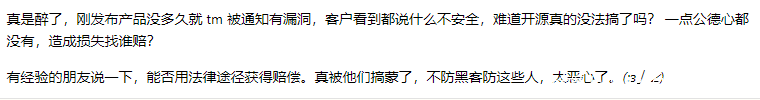 昨天,一哥们在科技论坛V2EX信息安全板块发布了一篇帖子,该用户表示吐槽自己刚上线的产品就被相关网安从业人员直接公开漏洞,对客户造成影响和损失,并询问广大网友能否通过法律途径获得赔偿。