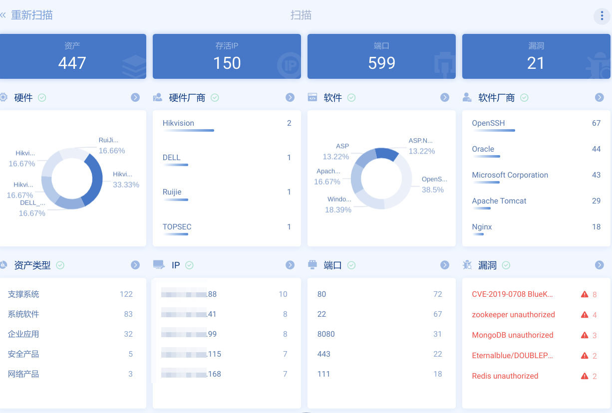 蓝方在前期和红方是一致的,即模拟攻击预演一次。诚然,红方在公网上用Goby扫描到的IP存活远不如蓝方多,但是Goby能够更加清楚全面的对资产进行展示,同时其扫描的数据可以导出,避免团队的重复劳动,又何尝不是个很值得尝试的工具呢!
