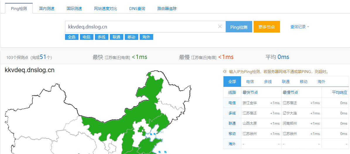 接下来,可以去网上找提供PING服务的网站。把上面提取出的攻击者的dnslog平台地址做为ping的目标地址,执行ping操作。
