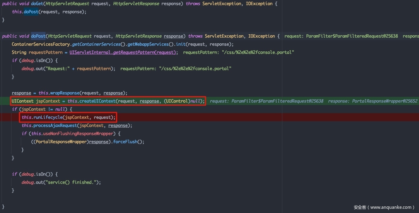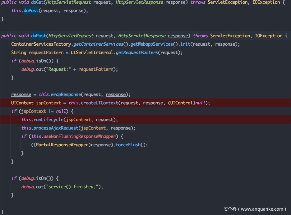 对于UIServlet来说,处理GET请求的逻辑最终也会在doPost方法中。上图红框中所标明的两处即为UIServlet的核心功能: