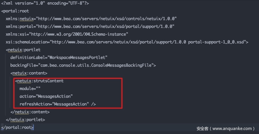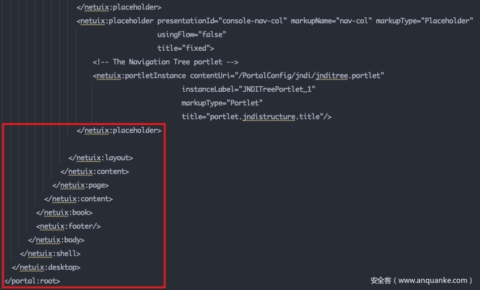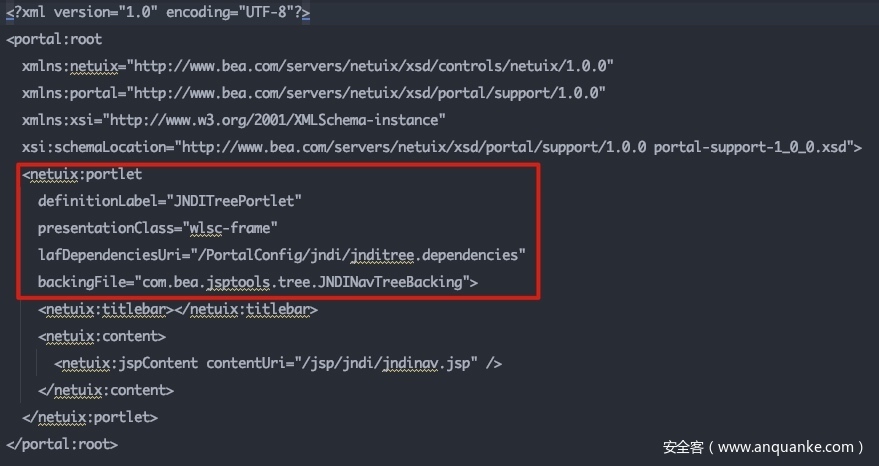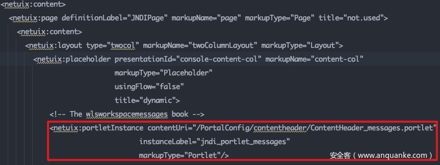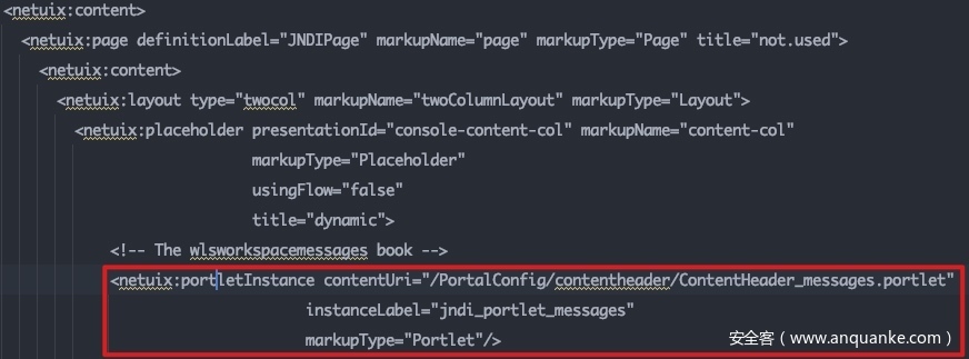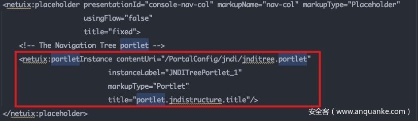 以consolejndi.portal为例,当节点为portletInstance时,会触发外部组件调用,及会跟进该文件,解析Content节点: