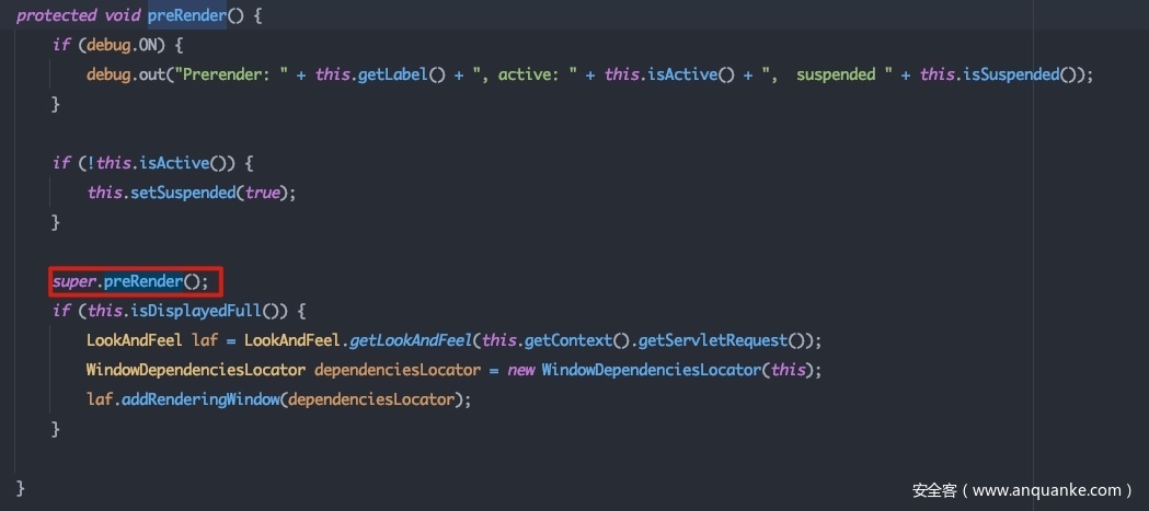 接下来就是一路向上,调用父类的preRender方法,调用栈如下: