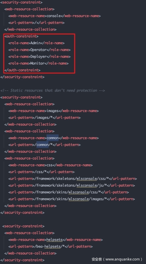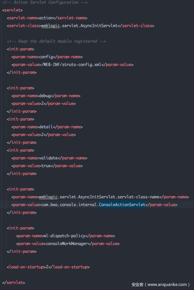 Weblogicconsole组件对应着Weblogic Server启动后的管理平台(即/console路由所对应的组件),其对应着一个webapp,所以想要理清路由所对应的servlet映射关系,就需要去看一下相关的配置文件。配置文件为wlserver/server/lib/consoleapp/webapp/WEB-INF/web.xml。