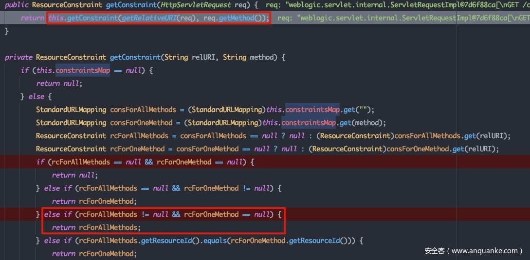 当首次请求进入后checkAllResources变量为false,所以跟进getConstraint方法: