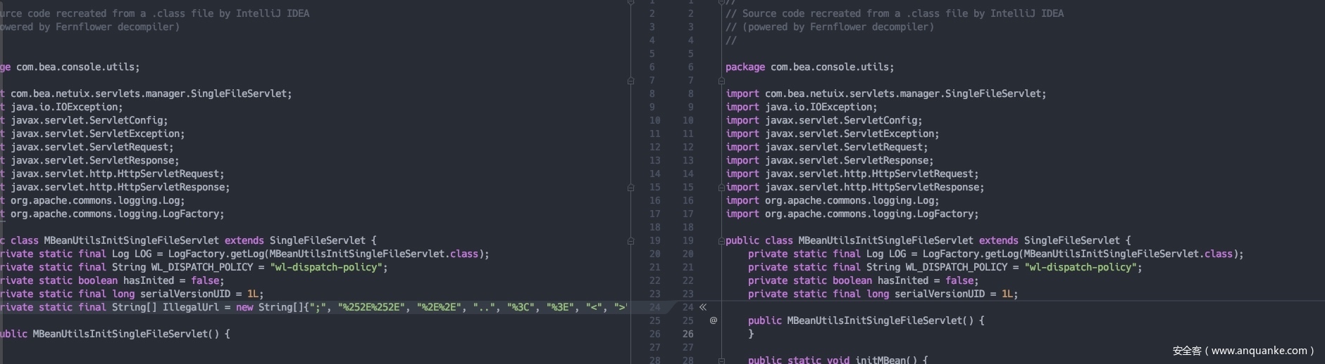 所以初始化过程实际上是实例化了com.bea.console.utils.MBeanUtilsInitSingleFileServlet,并调用其init()方法,跟进看一下其所对应的处理方法:
