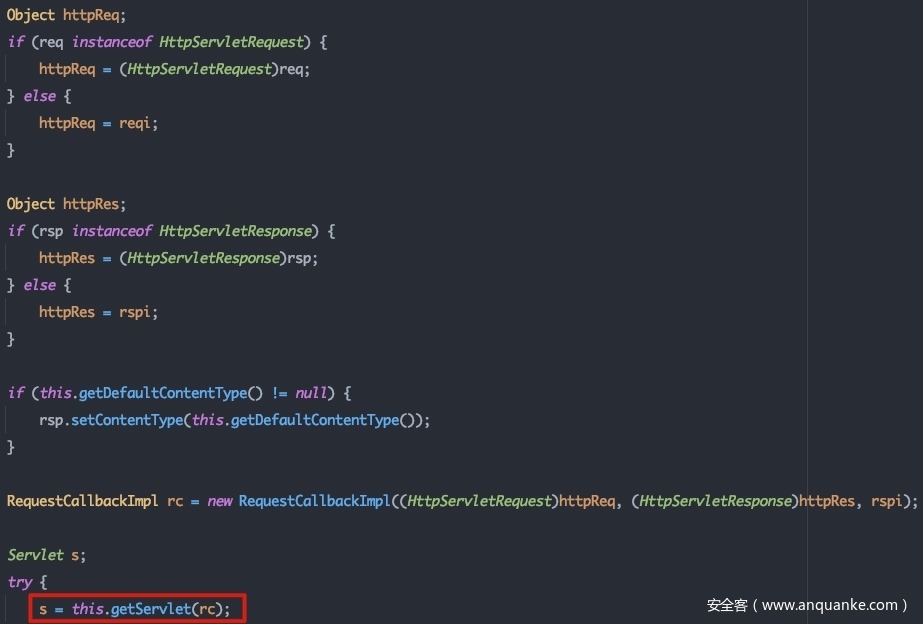 在具体分析路由鉴权前,需要先要寻找一下处理路由的servlet是哪个。