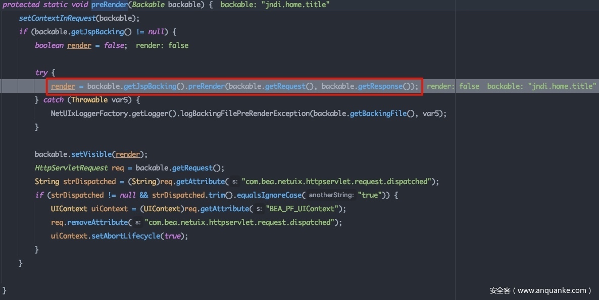 在com.bea.netuix.servlets.controls.Backable.Impl#preRender中将会获取jspbacking,并调用其preRender方法: