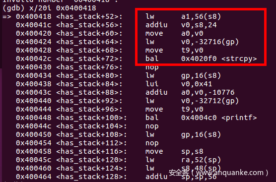 经过上文的分析,我们知道我们能够布置栈,来控制s0~s2和ra寄存器。初始我们将ra覆盖为gadget1,用于修改寄存器$a0,将sleep函数的地址放在s2备用,将gadgets放在s1用于下一次跳转。另外,使用gadgets需要考虑流水线效应。