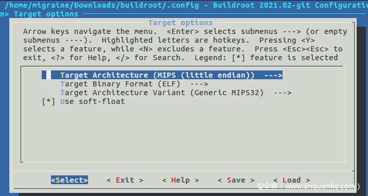 进入menuconfig之后,选择目标架构Mips32(需要注意mips包含大端mips和小端mipsel)。配置结束之后使用make编译工具链即可。