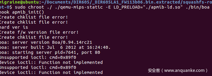$ sudo chroot qemu-mips ./squashfs-root-0/bin/boa