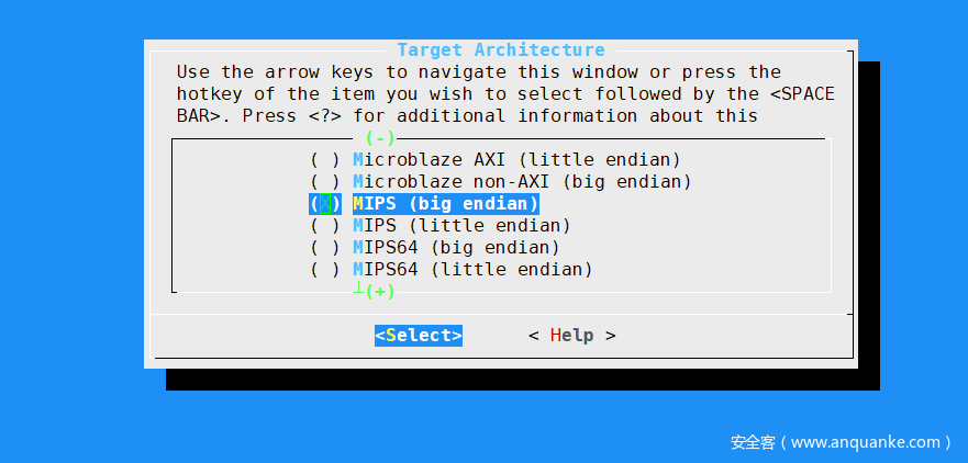 进到Target options这里面之后我们需要选他的架构和大小端序