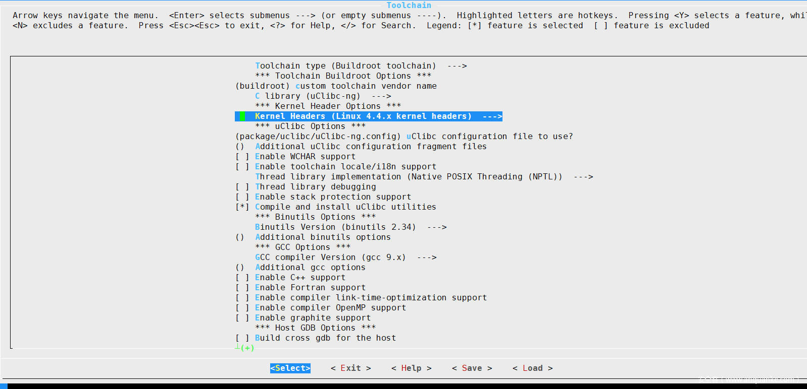 在toolchain里选择kernel版本uname -a看一下可以了,然后保存退出