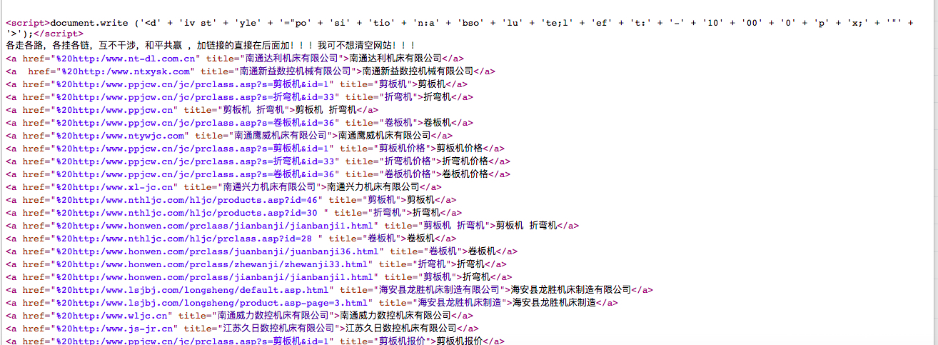 2、对植入的暗链内容进行编码,这类不多见,可以让站长看源码时也不一定能快速发现;