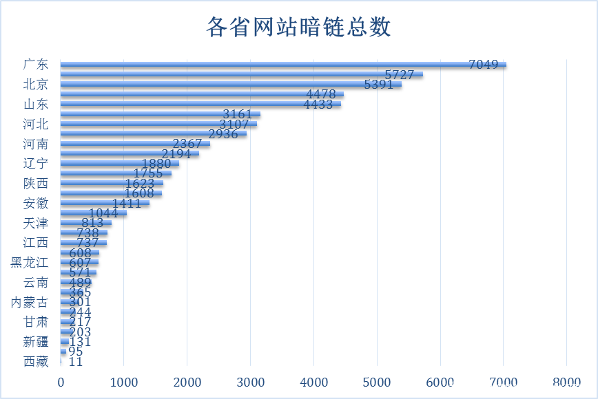图2-1 各省网站现存暗链总数
