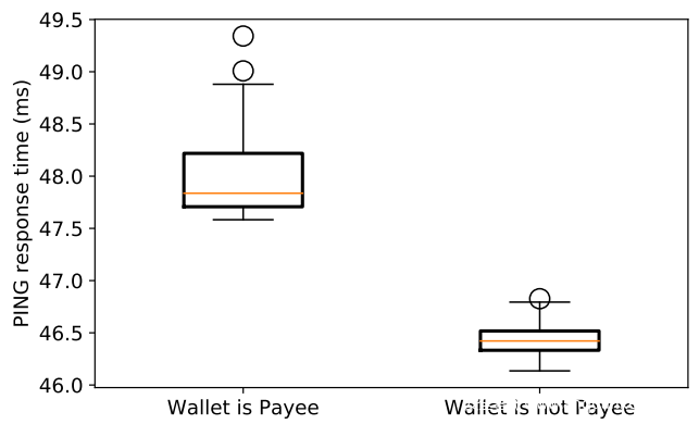 此外,即使用户的P2P节点和钱包位于同一位置,本研究也证明P2P攻击者仍然可以利用侧信道来推断钱包何时收到付款。展示了一种主动攻击,该攻击会将请求发送到受害者的P2P节点并计时响应,以揭示锁定受害者的P2P节点的资源,以指示已收到付款。