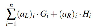 其中Gi和Hi是椭圆曲线组中的固定基点。所有进一步的证明者操作都依赖于v的随机值。因此,计算的椭圆曲线操作的数量是与交易量v无关的常数。注意到,此属性是Bünz等人描述的证明协议所固有的。