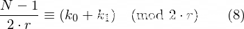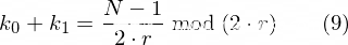 由于本题中p不等于q,根据(2)式和(3)式可知k_0不等于k_1,由于k_0和k_1都是区间[0, r + 1)上的随机数,因此一定有k_0 + k_1 < 2 * r,此时有: