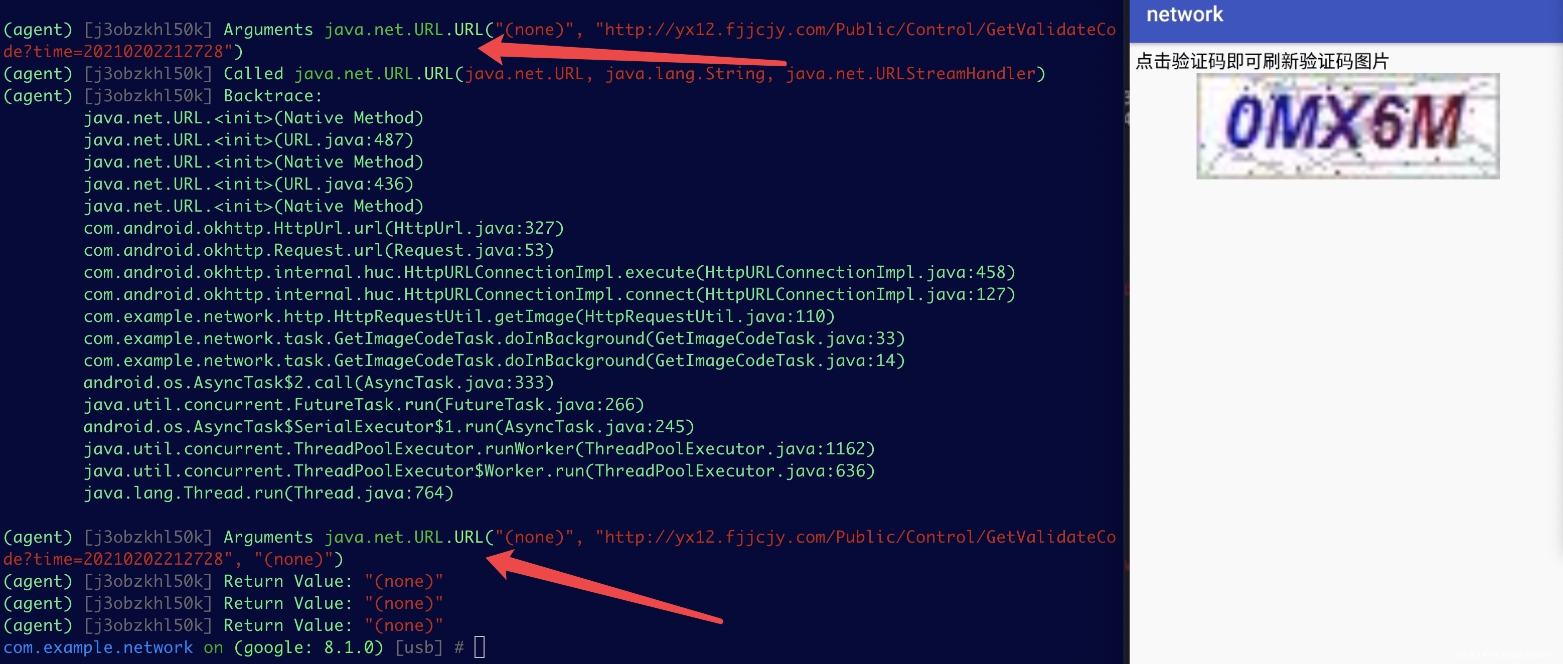 com.example.network on (google: 8.1.0) [usb] # android hooking watch class_method java.net.URL.$init –dump-args –dump-backtrace –dump-re