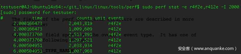 在上述场景中,利用LLC-references以及LLC-misses事件我们得到了如下结果: