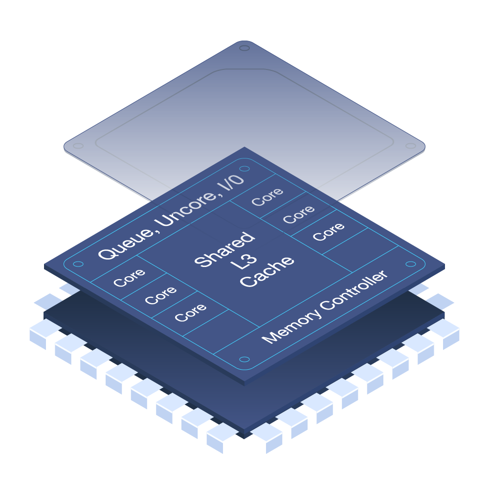 图1. 现代CPU的组件,包含多个核心以及L3缓存