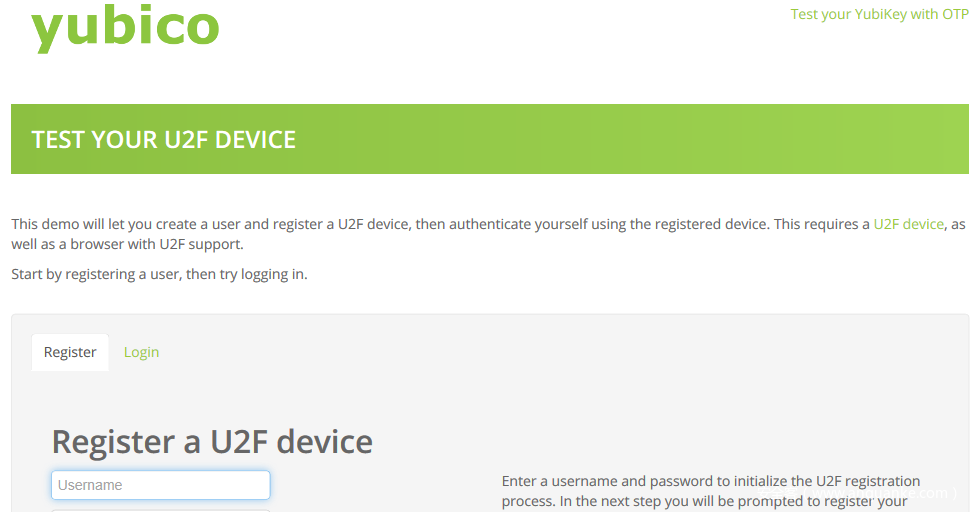 对于想要测试U2F朋友,yubico已经提供了测试用的网站,网址是: