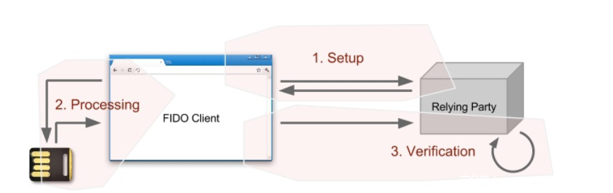 U2F标准规定了U2F设备可以使用USB接口,蓝牙,NFC的方式与PC机进行通信。通信过程需要三方的支持:网站,U2F客户端,U2F设备。目前常用的U2F客户端为浏览器。