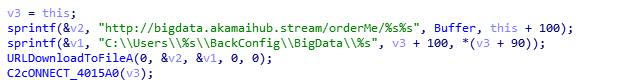 当指令不是上述两条指令,则从http://bigdata.akamaihub.stream/orderMe下载文件保存到路径C:\Users\%s\BackConfig\BigData,之后继续与C2通信获取需要执行的指令: