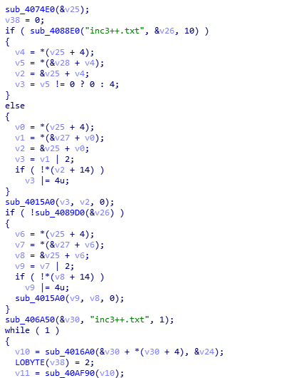 该插件的主要功能为键盘记录,其首先会在当前目录创建文件inc3++.txt,并检索%USERPROFILE%\Printers\Neighbourhood目录下是否已有历史键盘记录文件存在,若有则将文件名与最后修改时间保存到inc3++.txt: