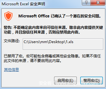 该诱饵文档同样是利用恶意宏的Excel样本,打开文档后会提示启用宏: